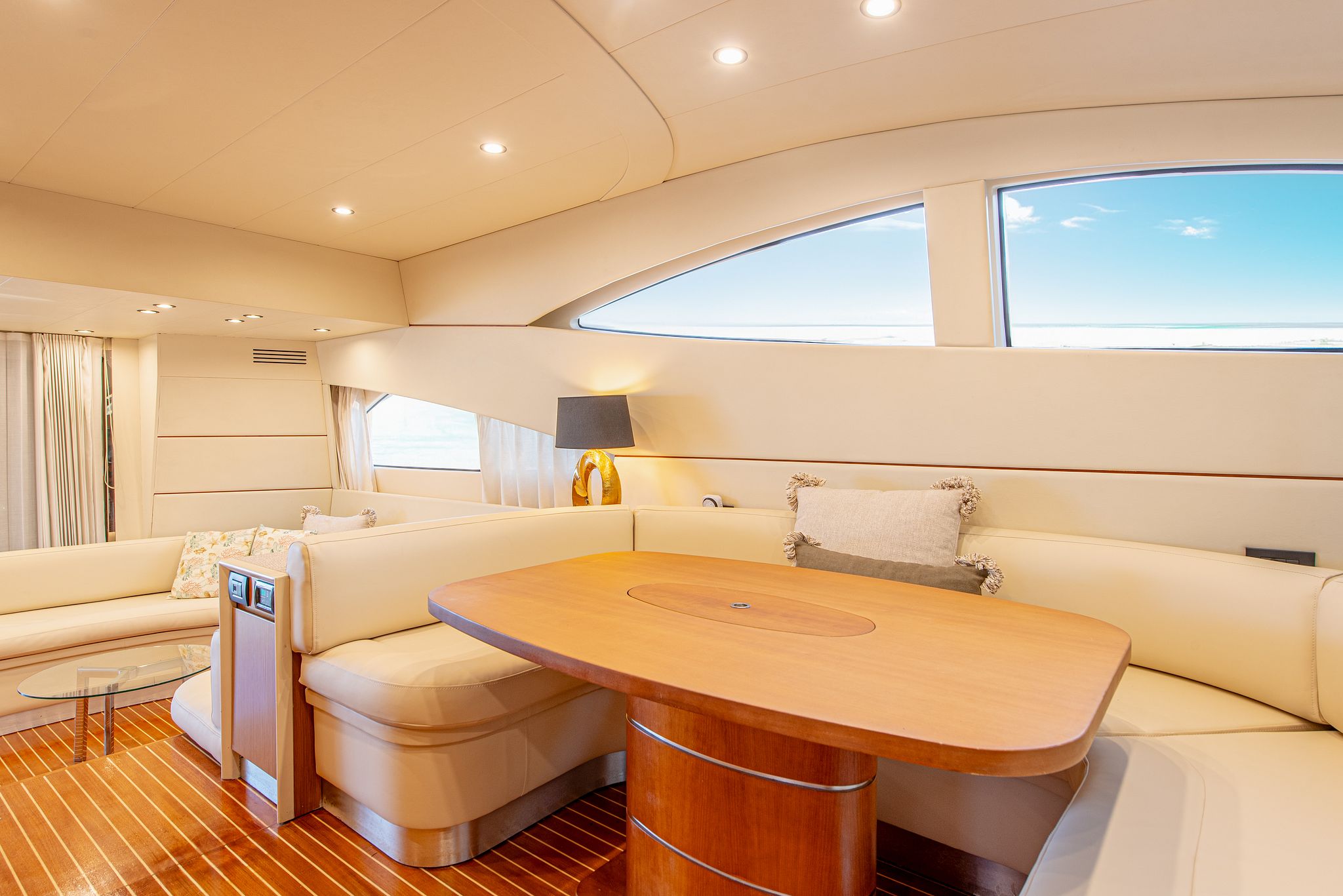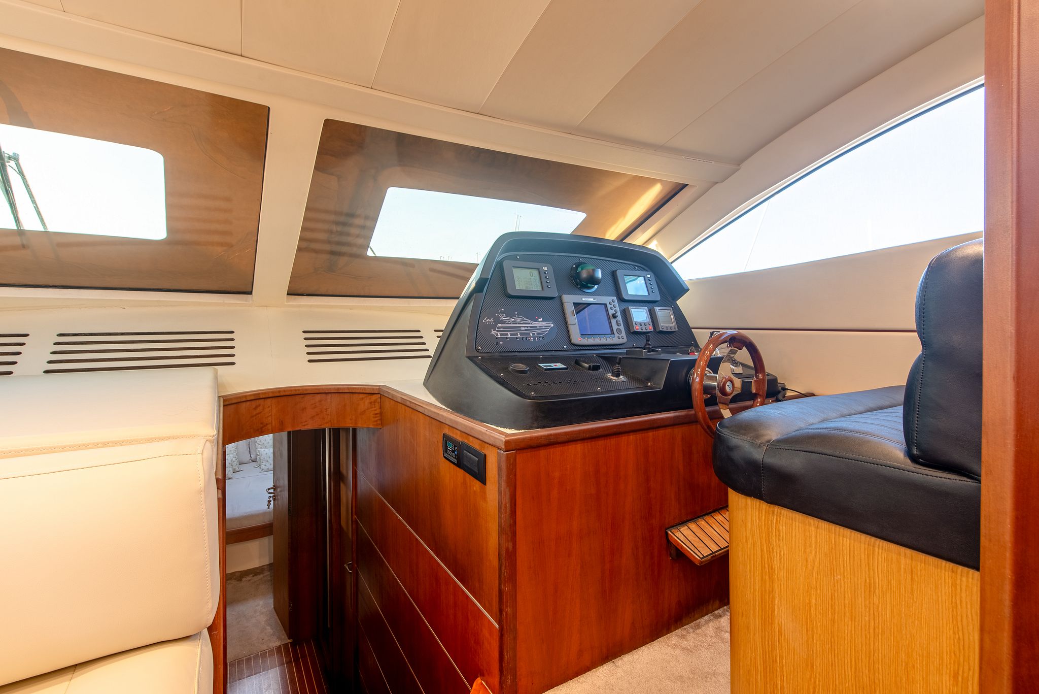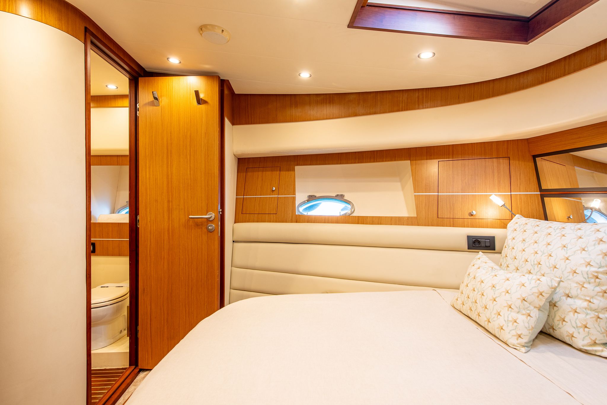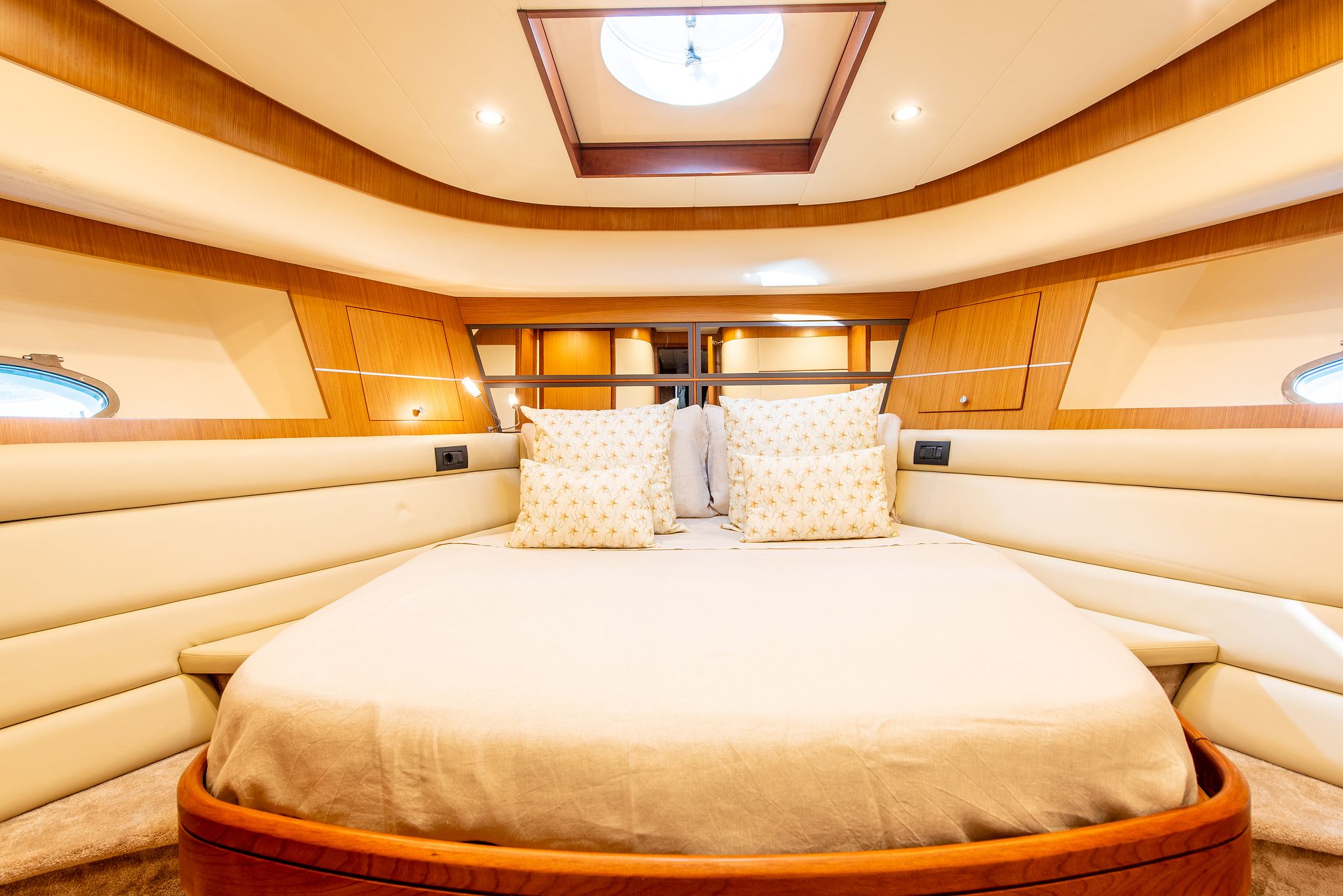 With two double cabins, one twin cabin, and a crew cabin , the Abacus 61 can accommodate up to six people overnight, guaranteeing comfort and privacy. Its spacious flybridge features a large sun deck , ideal for relaxing in the Mediterranean sun and enjoying breathtaking panoramic views.