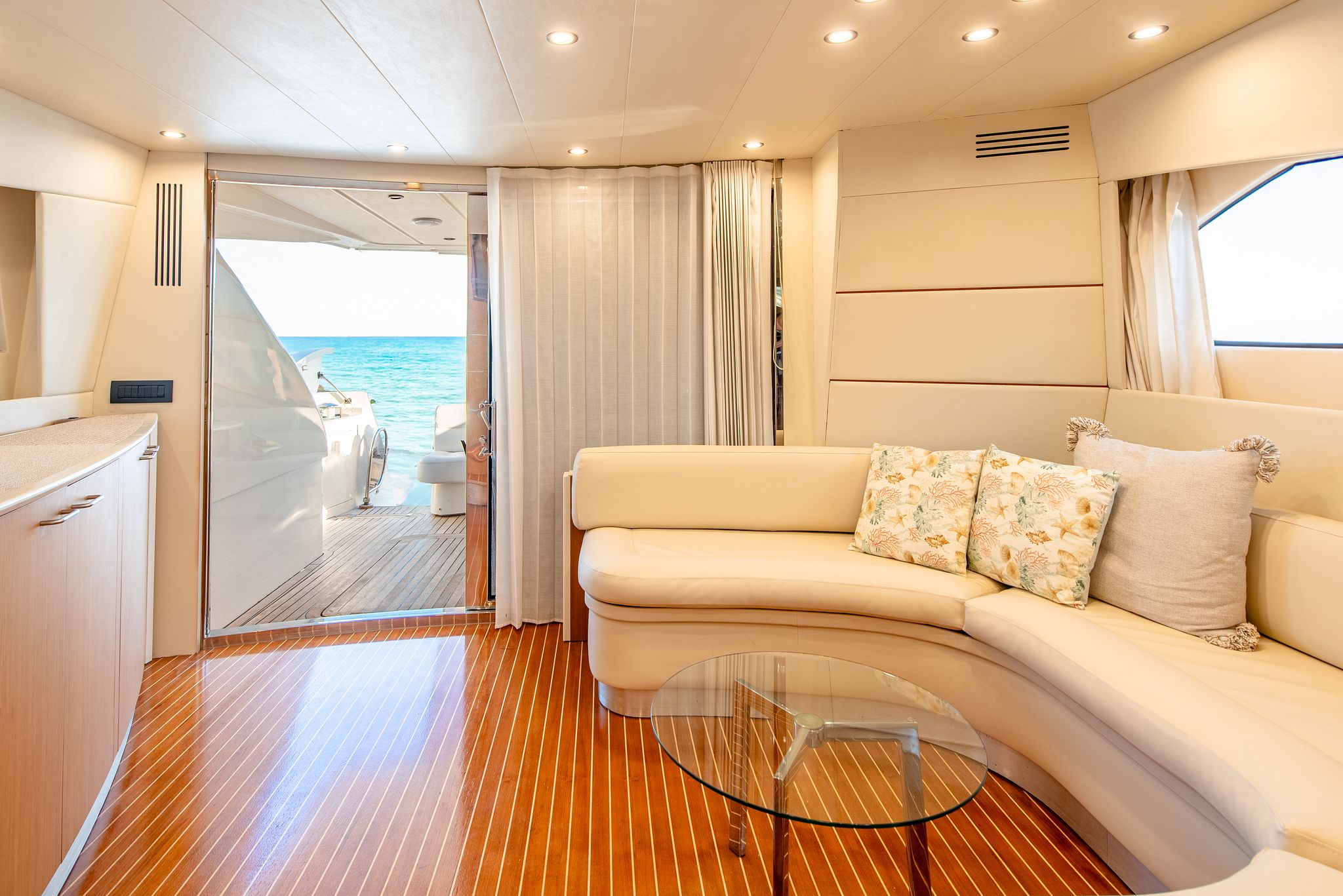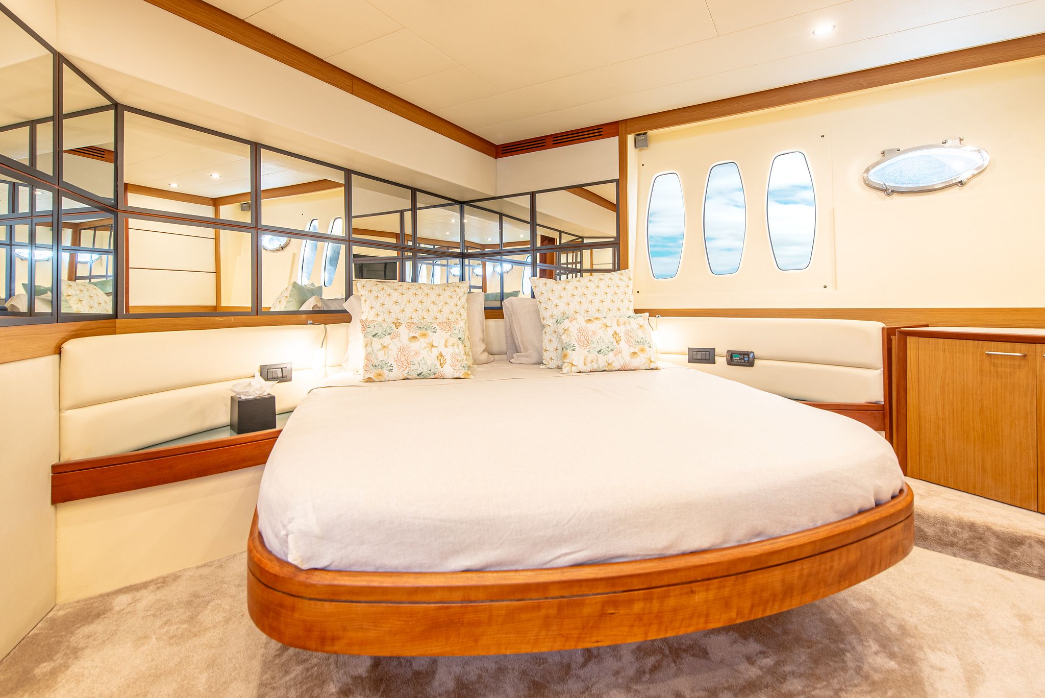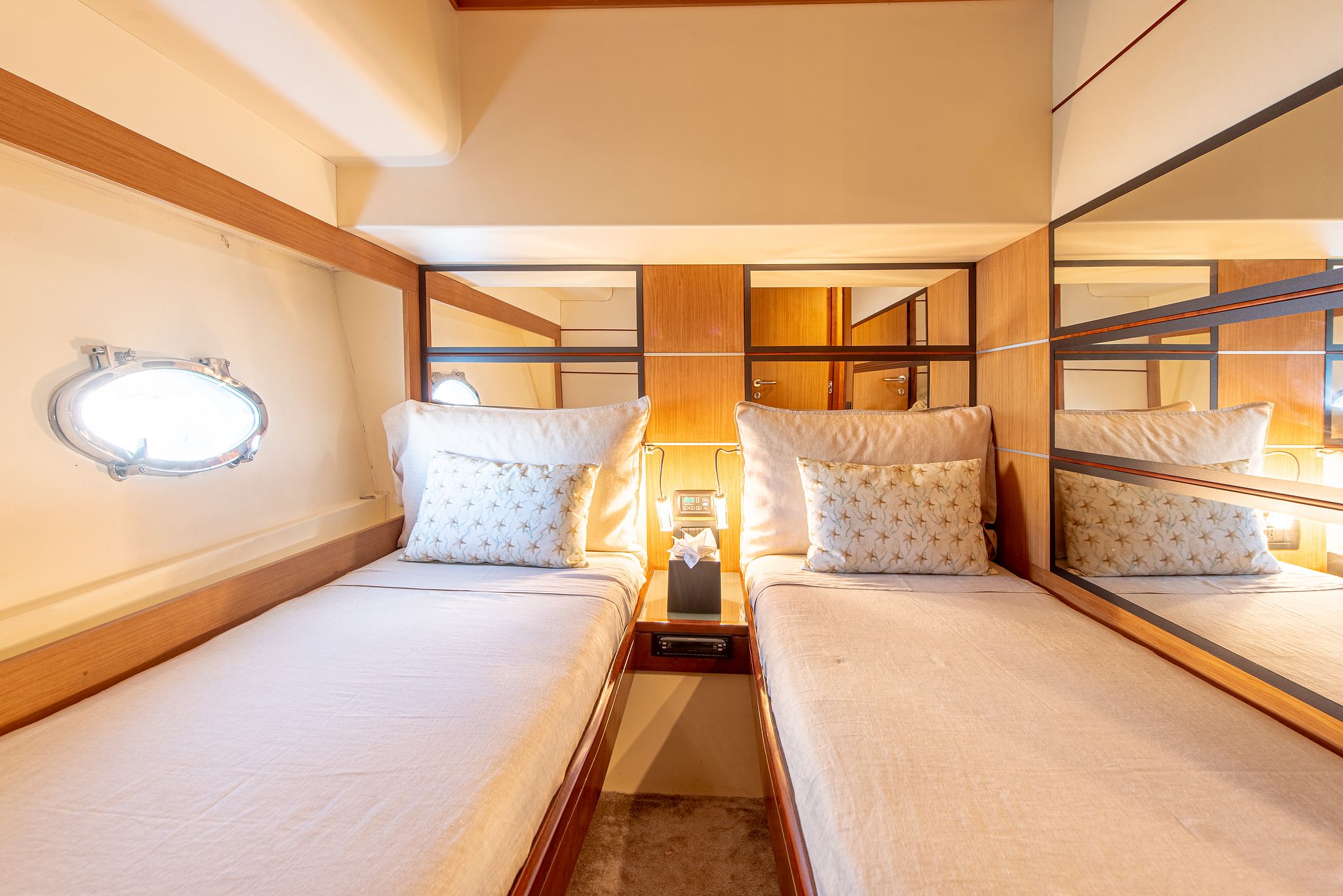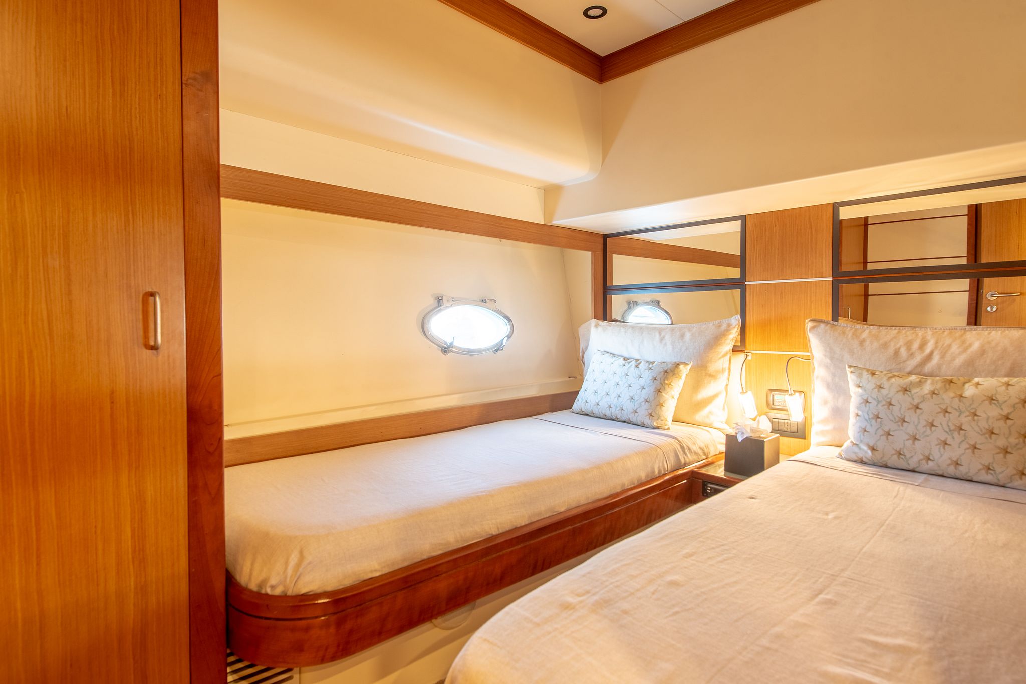 With two double cabins, one twin cabin, and a crew cabin , the Abacus 61 can accommodate up to six people overnight, guaranteeing comfort and privacy. Its spacious flybridge features a large sun deck , ideal for relaxing in the Mediterranean sun and enjoying breathtaking panoramic views.
