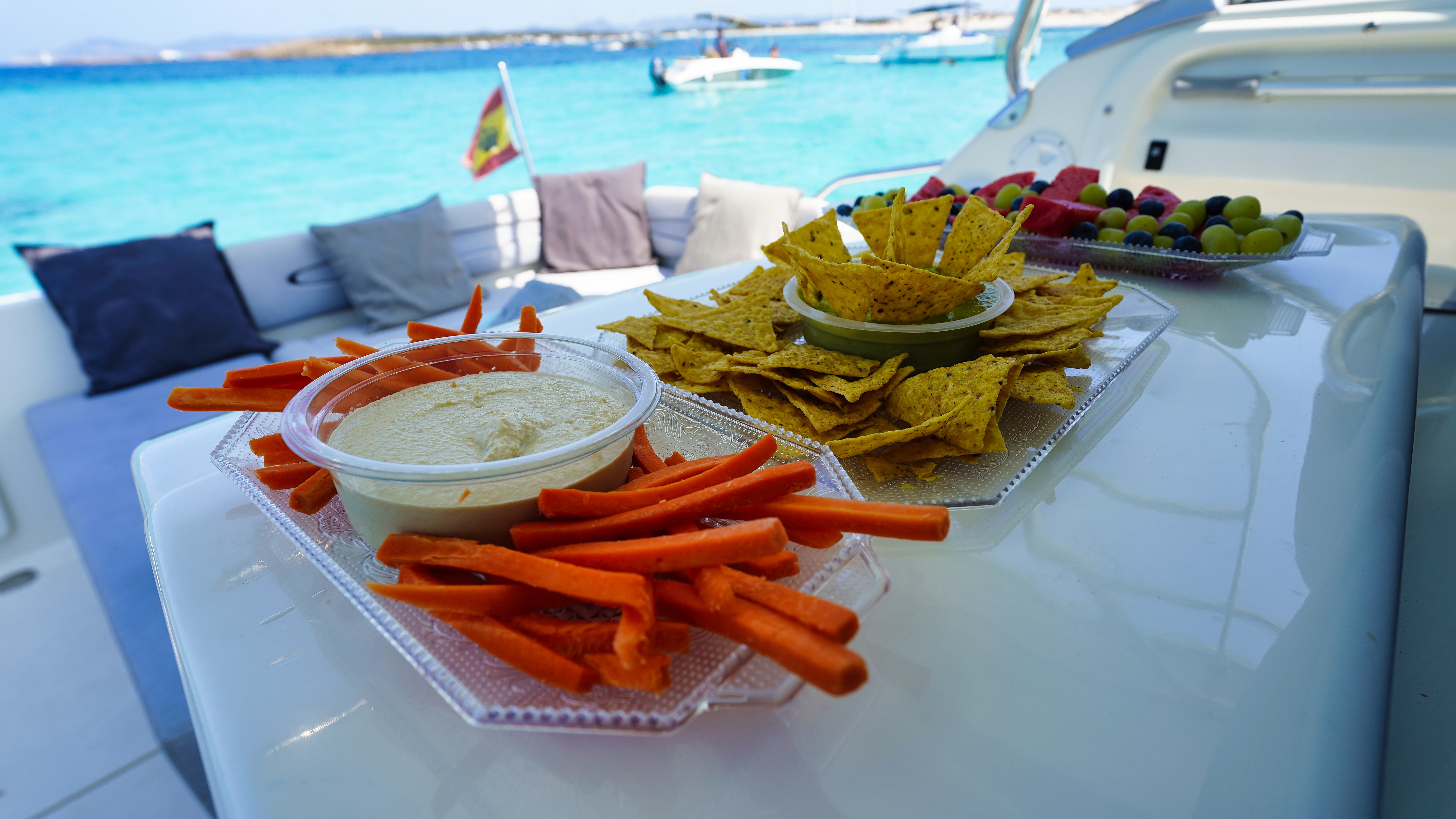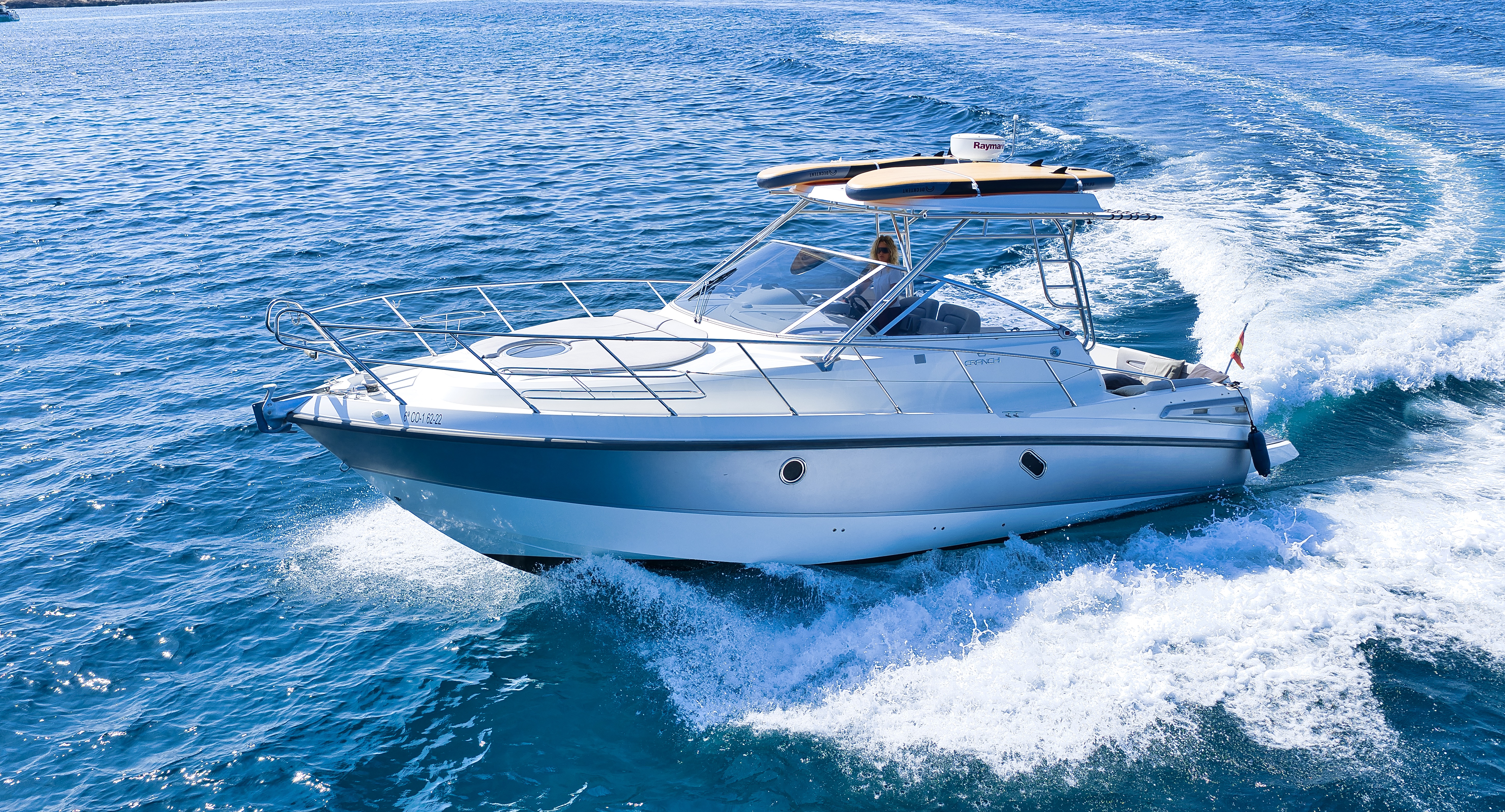 Ideal routes to Formentera with fuel consumption: Departure from the port to Es Palmador / Illetes Beach and return to the port. Restaurant Options: Es Ministre / Juan Y Andrea / El Pirata / Es Moli de Sal / Tiburon / Beso Beach 1 hour and 15 minutes of sailing: €225 Departure from the port to Es Palmador / Illetes Beach / Cala Saona / Cala Saona Caves and return to the port. Restaurant Options: Es Ministre / Juan Y Andrea / El Pirata / Es Moli de Sal / Tiburon / Beso Beach / El Sol 2-hour cruise: €360 Departure from the port to Es Palmador / Es Pujol / Cala d'en Blaster / Es Calo and return to the port. Restaurant Options: El Tanga / Fandango / Chez Gerdi / Can Rafalet / Es Calo 2-hour cruise: €360 Departure from the port and complete tour of Formentera and return to the port. All available restaurants. 3-hour cruise: €540 Routes around Ibiza. Consult us. Price per hour of navigation: €180 for gas.