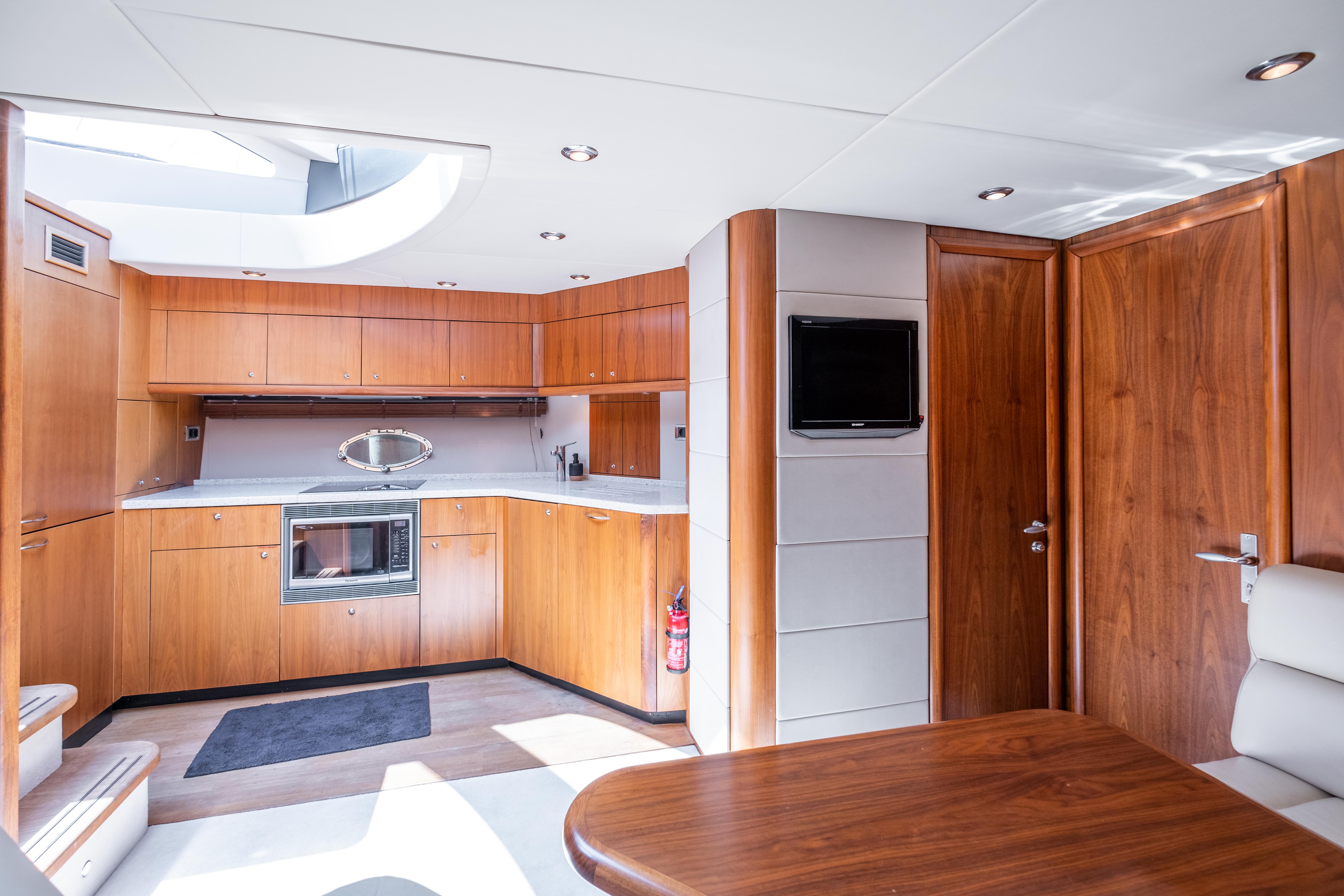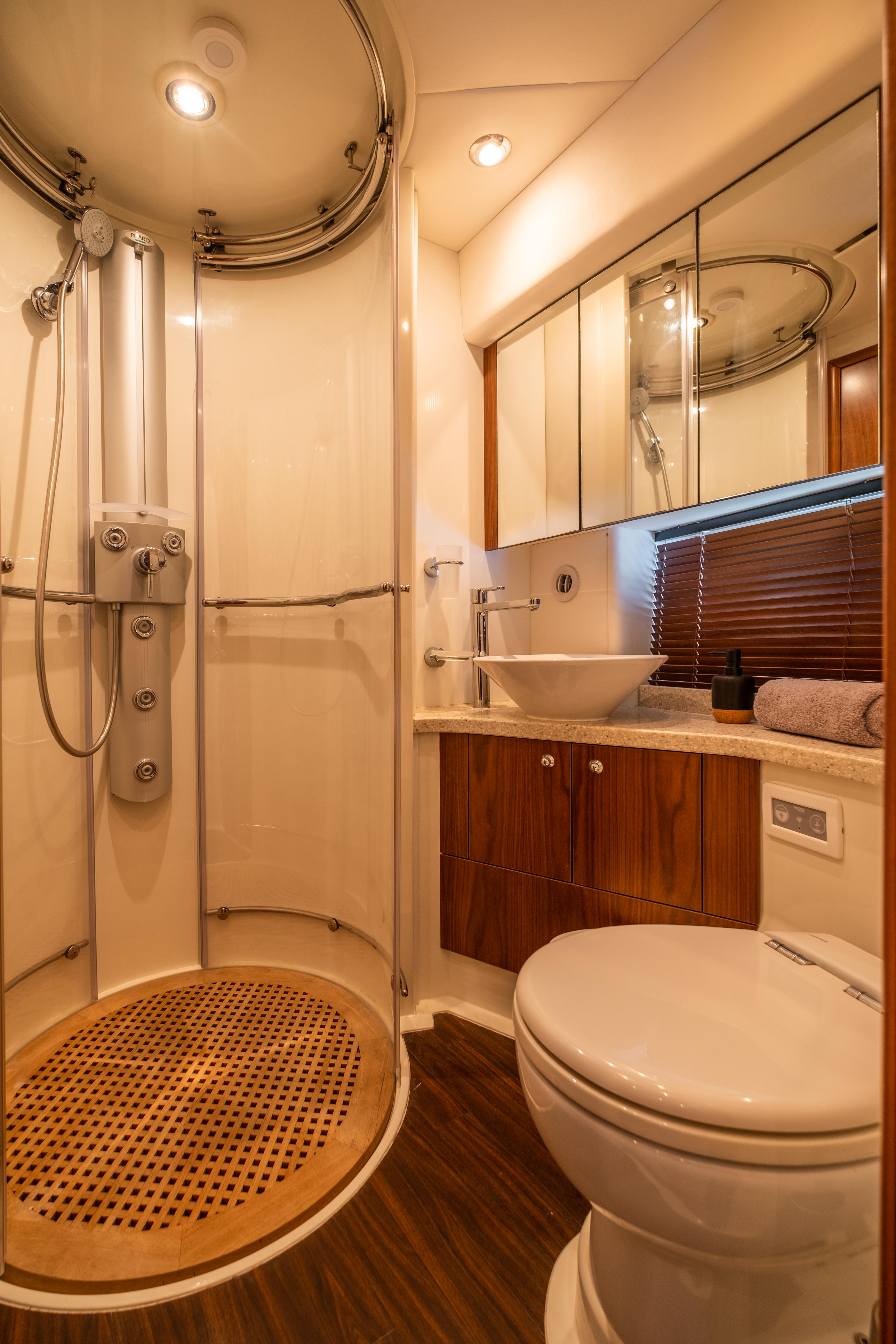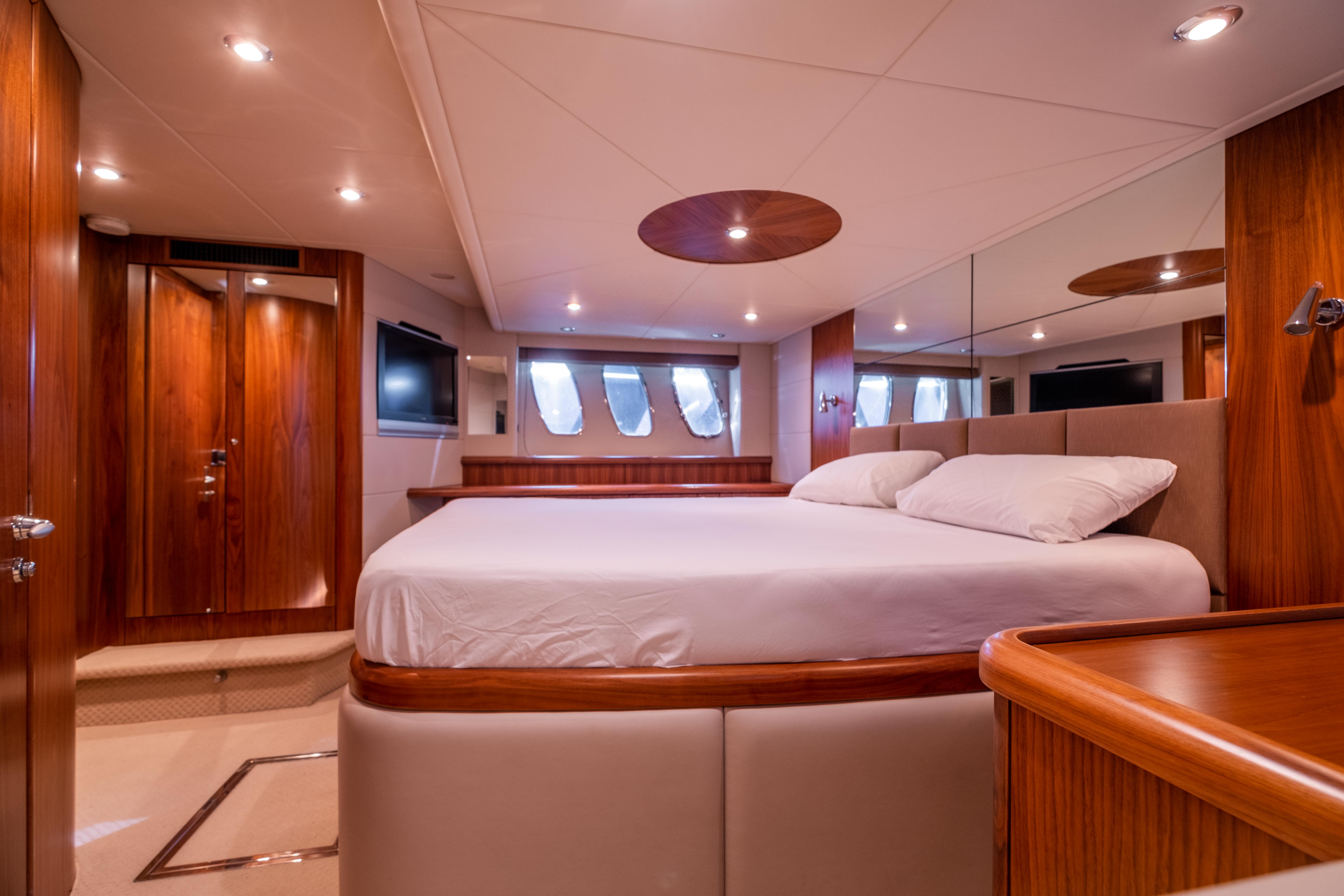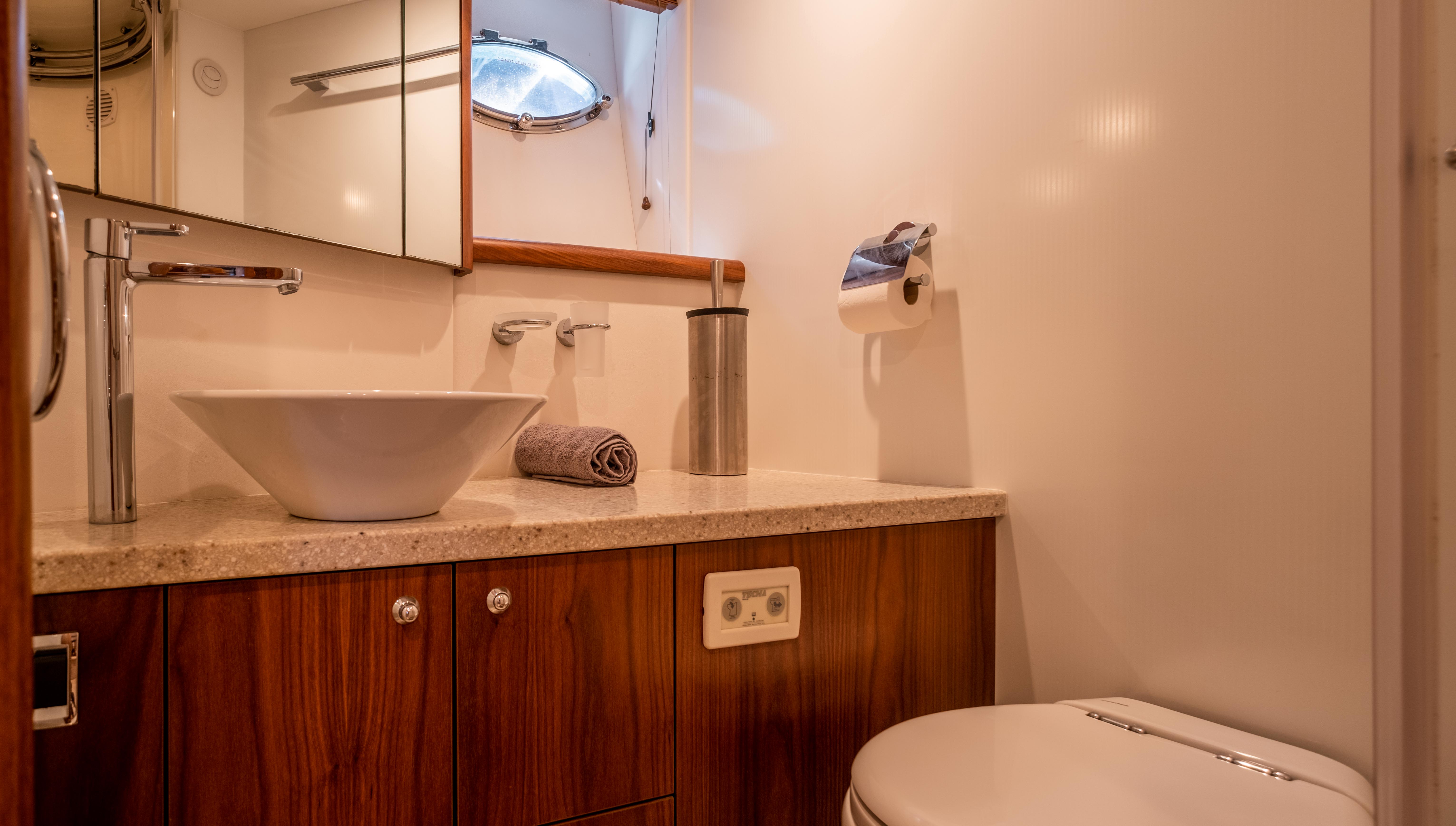 This impressive yacht features two double cabins and one twin cabin , offering exclusive relaxation in a sophisticated setting. Air conditioning ensures comfort at all times, while the enclosed dining area allows you to enjoy a private meal with sea views. On its spacious deck, you'll find sunbathing areas and shaded spots , perfect for relaxing and enjoying the scenery.